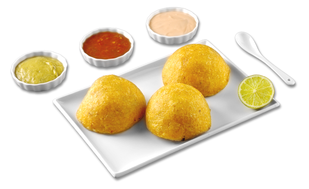 Crocante masa de maiz amarillo, relleno de papa, pollo desmechado, aliños, agentes retenedores de agua, sal y pimienta.